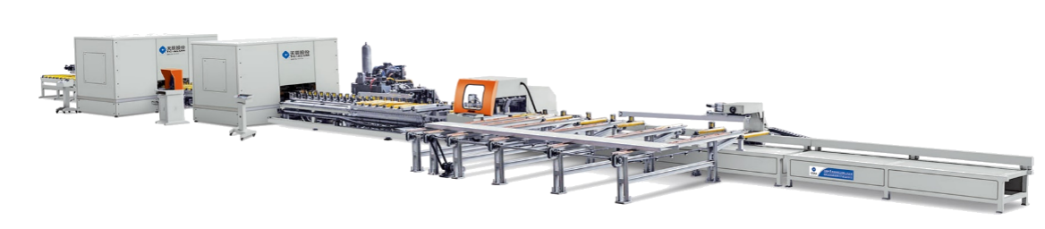 ⑸、操作安全可靠。自動(dòng)化的作業(yè)模式,除上下料外,無需過多人為干預(yù),鋸切、沖孔及銑槽單元均有密封防護(hù)罩,確保操作人員安全。