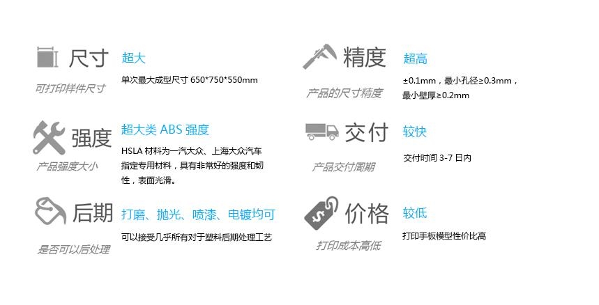 1.HSLA為美國3D Systems公司提供的最先進(jìn)SLA技術(shù),HSLA提供了最優(yōu)秀的表面質(zhì)量;